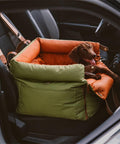 Green and Orange Premium Plush Pet Booster Car Seat - Portable Dog Travel Bed with Non-Slip Base