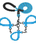 Blue 3-in-1 Tangle-Free Dog Leash for 1-3 Dogs - Heavy Duty Bungee Coupler with Reflective Stitching & Padded Handle