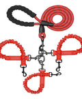 Red 3-in-1 Tangle-Free Dog Leash for 1-3 Dogs - Heavy Duty Bungee Coupler with Reflective Stitching & Padded Handle