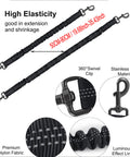 - Tangle-Free Bungee System: Each splitter features a shock-absorbing bungee section that stretches from 50cm to 90cm. This reduces the strain from sudden pulls and jerks, protecting your arm and your dogs' necks. The 360-degree swivel clips prevent the lines from twisting, ensuring a tangle-free experience.