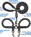 - Comfortable Handling (if main leash included): The main leash often features a soft foam handle for a comfortable grip and is made from strong climbing rope material. Includes a handy ring for poop bags or keys.