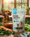 There are dozens of different nutrients found within bone broth including amino acids like glycine, collagen, gelatin, and trace minerals like calcium, potassium and magnesium. This super mix can have a positive impact in important areas like gut health and joint condition. You can learn more about the benefits of pet bone broth here. Chicken broth for dogs is an excellent supplement regardless of your situation.